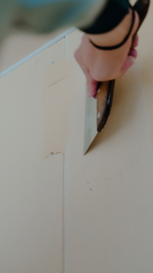 建物の内部空間を美しく快適に仕上げる職人を指します。一般住宅から商業施設、オフィス、学校や病院などの公共施設まで幅広く手掛け、クロス、フローリング、カーペット、天井などの「見える部分」を仕上げる建築工事の最終の仕上げという重要な役割を担います。