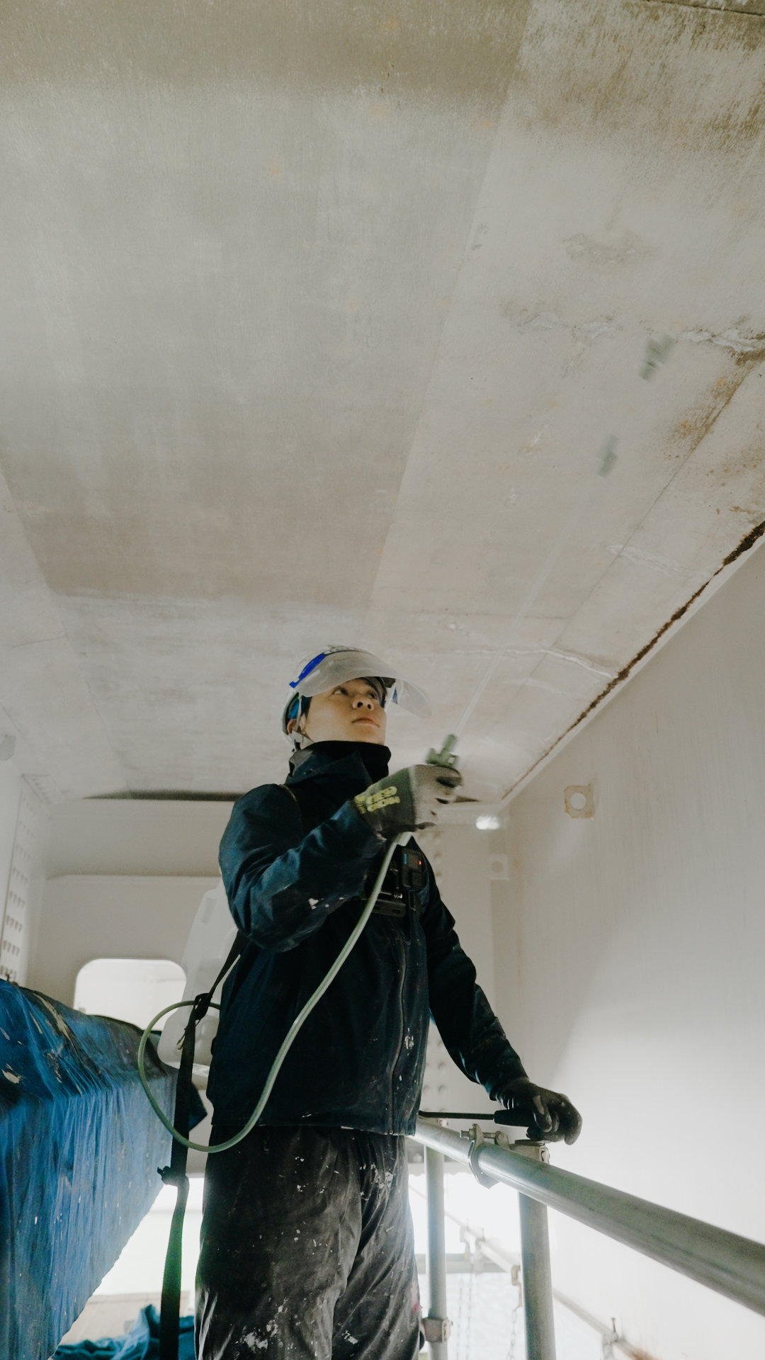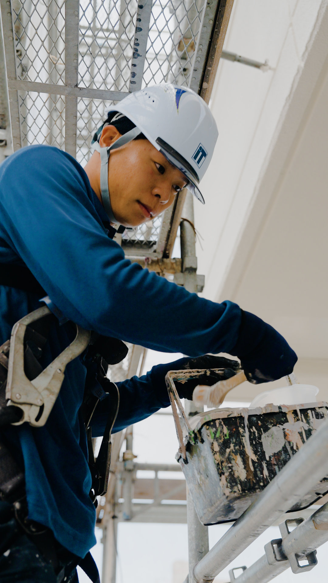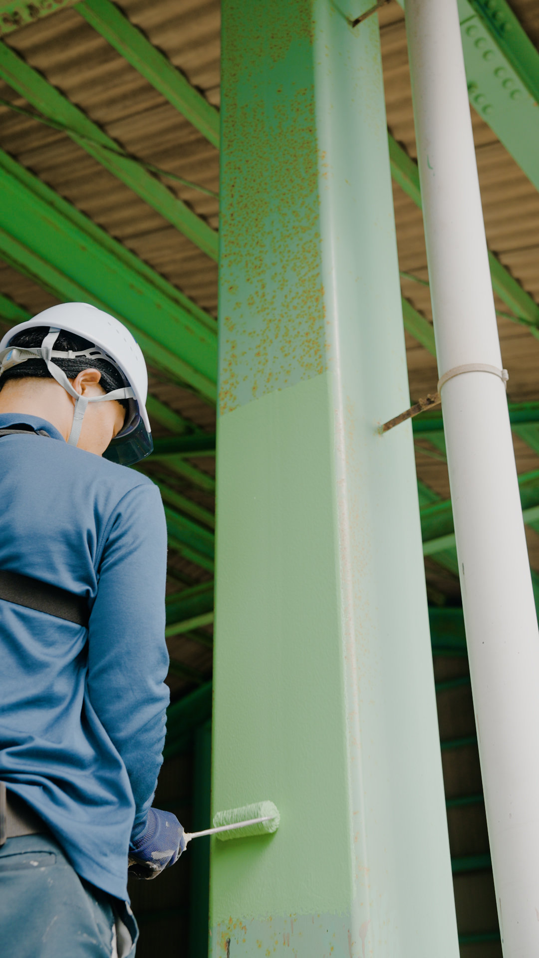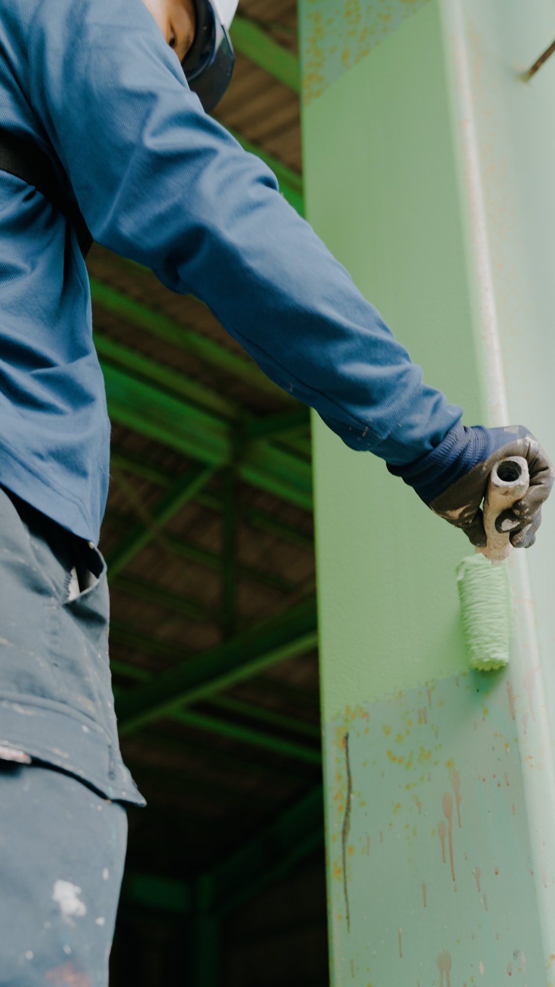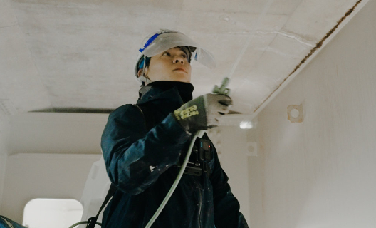 一般の住宅から、橋の塗り替えなどの公共工事まで、構造物の外部や内部に塗料を塗ります。塗装は美しく仕上げるだけでなく、紫外線や雨風などのダメージから守る役割も担います。構造物の状態を調査・把握し、適切な塗料の選定や正しい所要量で仕上げる高い技術力が試されます。