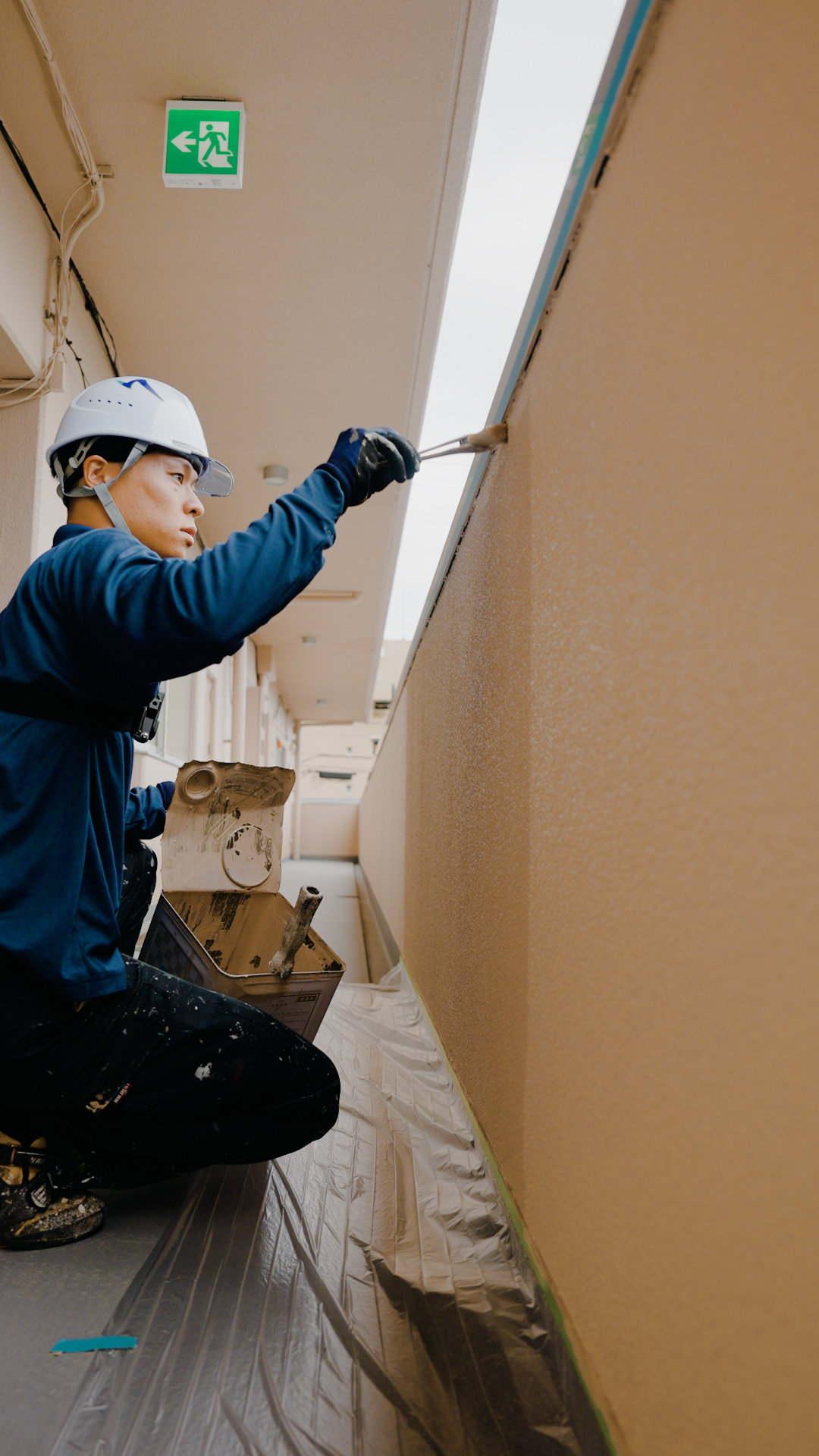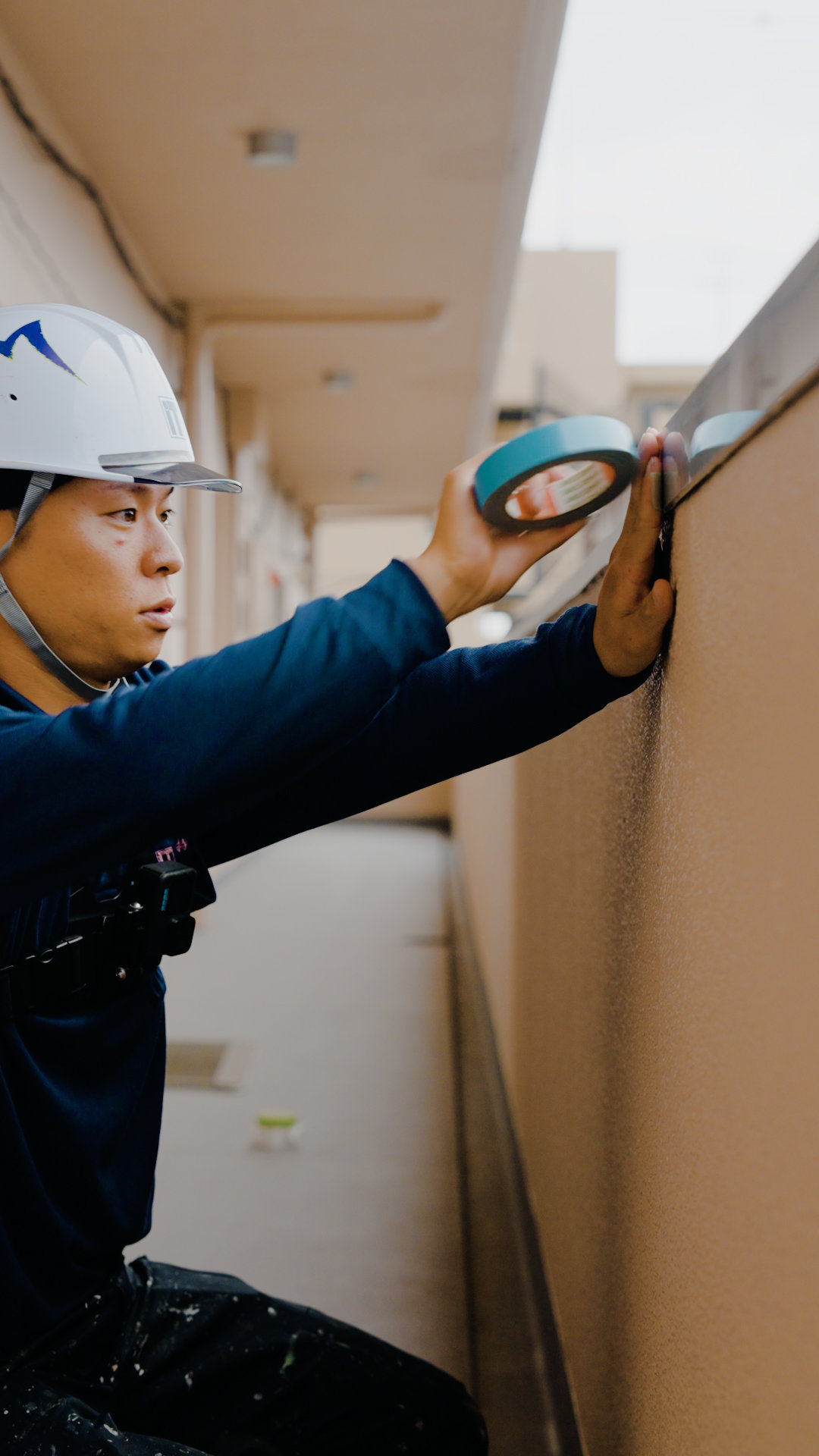塗料のまわりへの飛散や付着を防ぐためシートやテープなどを使って覆うことを養生と言います。養生を丁寧に行うことで、仕上がりの歪みや見栄えの悪さを防ぎます。養生は塗装作業が終わると撤去されるため人目につくことはありませんが「塗る」以上にスキルが必要な作業です。