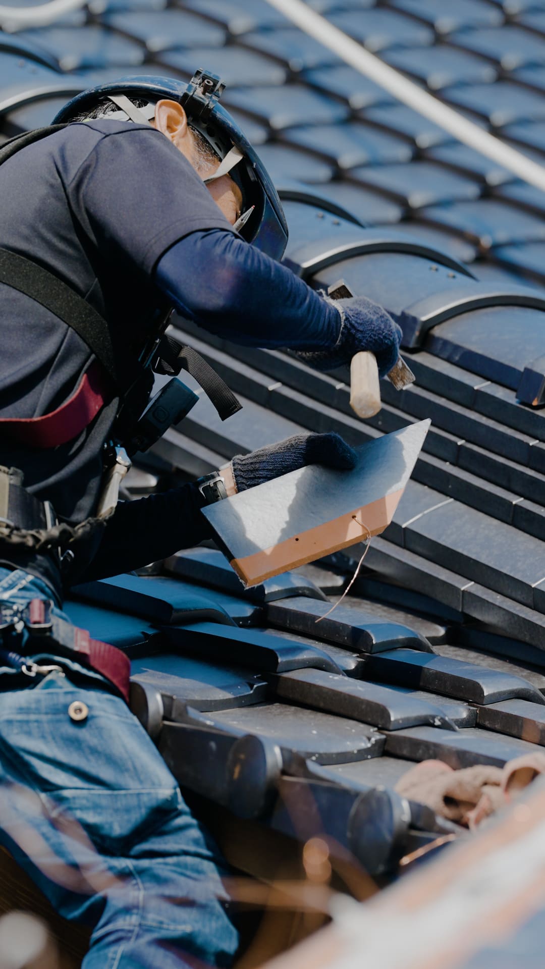 葺師の仕事は新しい屋根を葺くだけではありません。雨漏りの原因を探し、部分的に直す「修繕」の仕事も多くあります。屋根は普段見えないため、不具合の原因が分かりにくく、経験と勘が頼りになります。瓦を一度外して内部を確認し、元の形を崩さずに戻す技術は、実は新築以上に難しい作業。建物を長く使うために欠かせない役割を担っています。