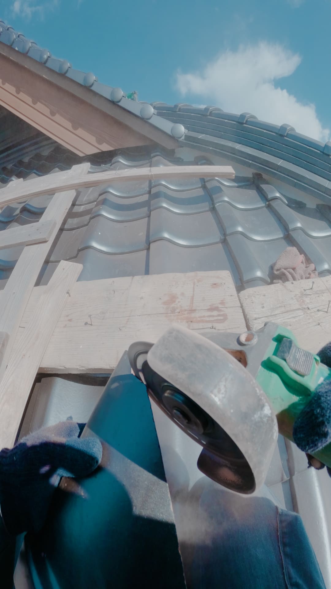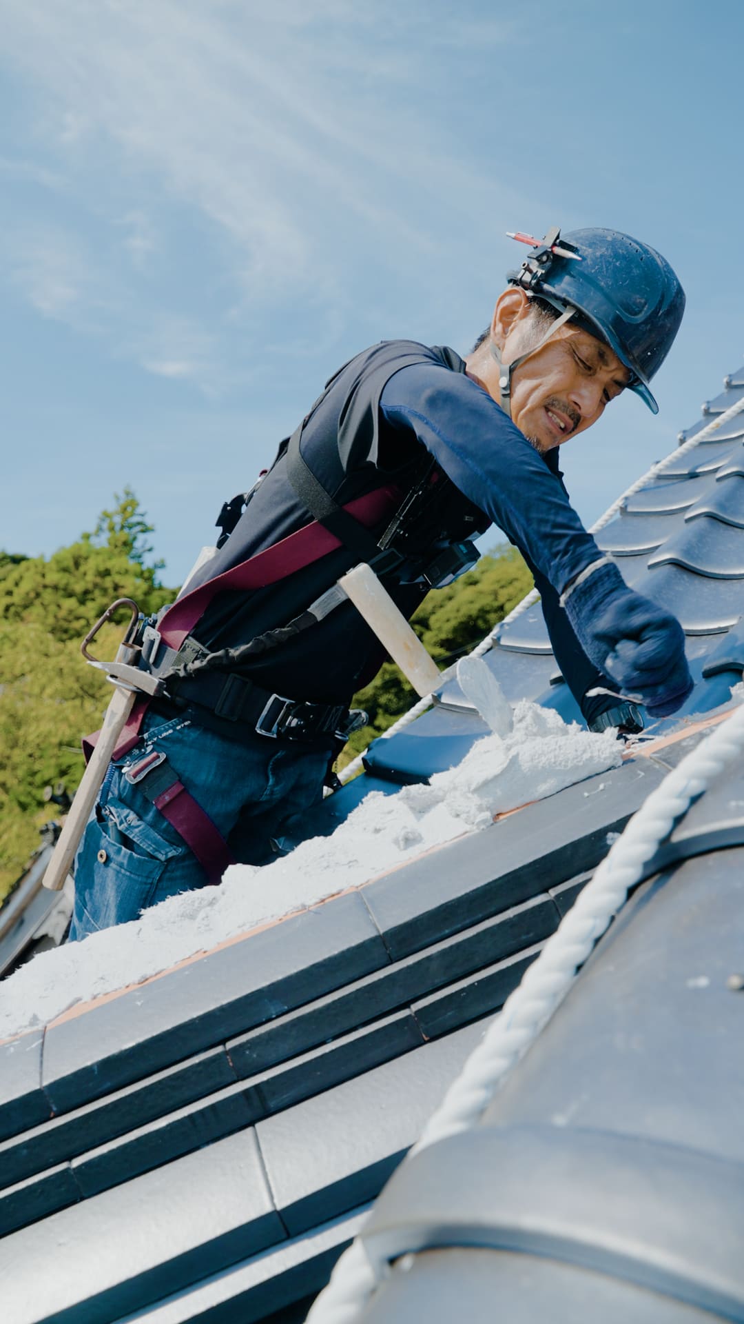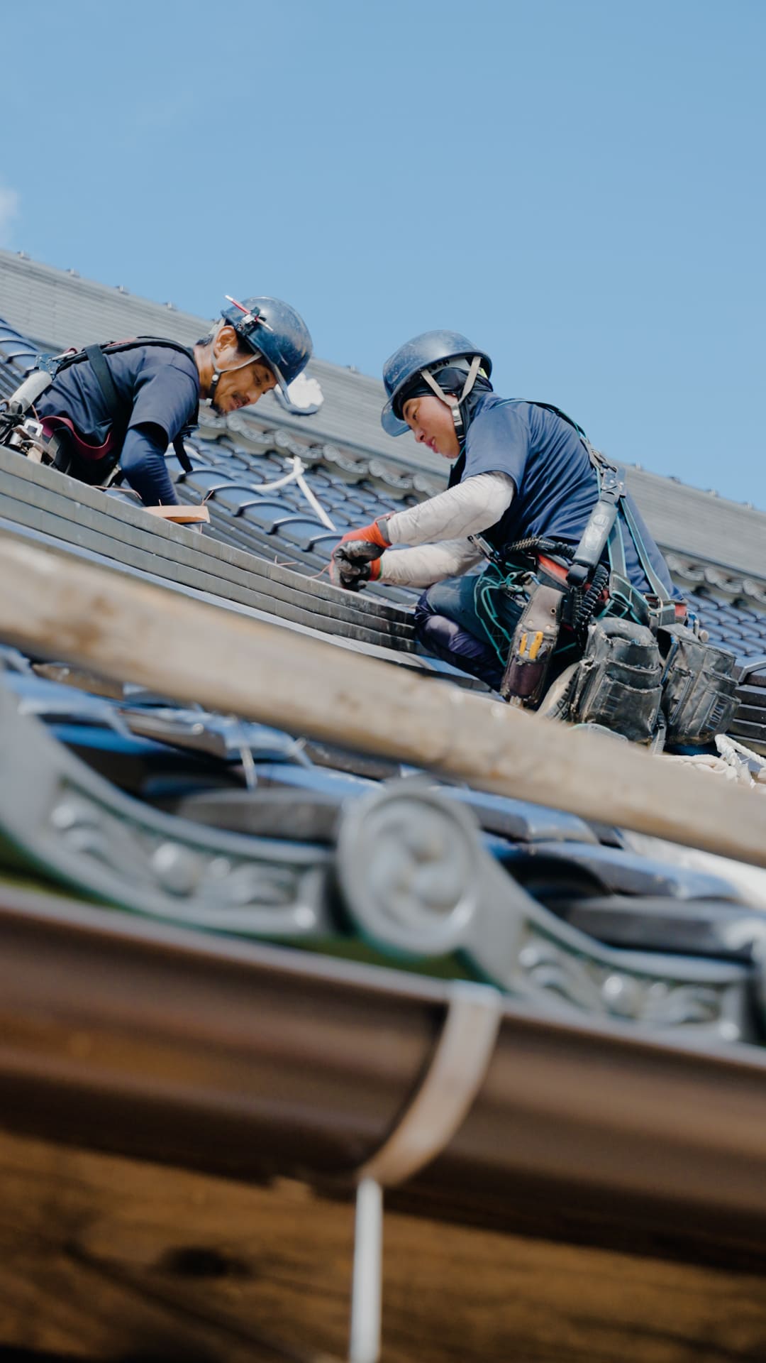 最近は機械や簡易的な工法も増えたけれど、屋根の上には人の手じゃないとできないことがたくさんあります。そんな「葺師の価値」を知っていただき、「すごい」「かっこいい」と感じてもらえるよう、自分も技術を身につけて、次の世代に残していけたらと思います。あとは、日々現場が違うので、屋根の上から見る景色は最高ですし、自分達が施工した建物に暮らしがあると嬉しいです。